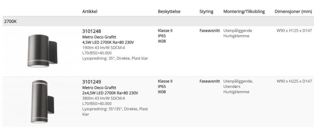 Dette er lamper i proffkvalitet som vil se fine ut etter veldig mange år. Mange rimelig utelamper har lakk som fort faller av hvis de står litt værhardt til, men som ser fine ut som nye. Det tar tid før kvaliteten viser seg i utlamper.