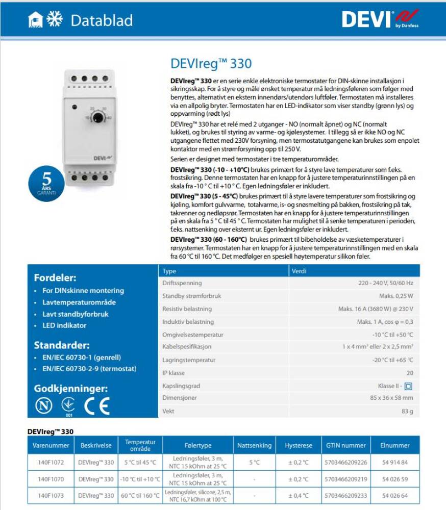 Denne modellen brukes primært til å styre væsketemperatur i rørsystemer